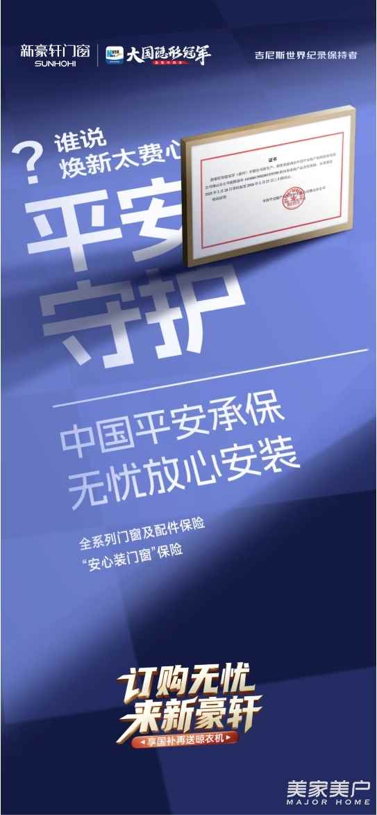 订购无忧险 门窗放心选!新豪轩行业首发门窗消费险,树立行业消费保障范本