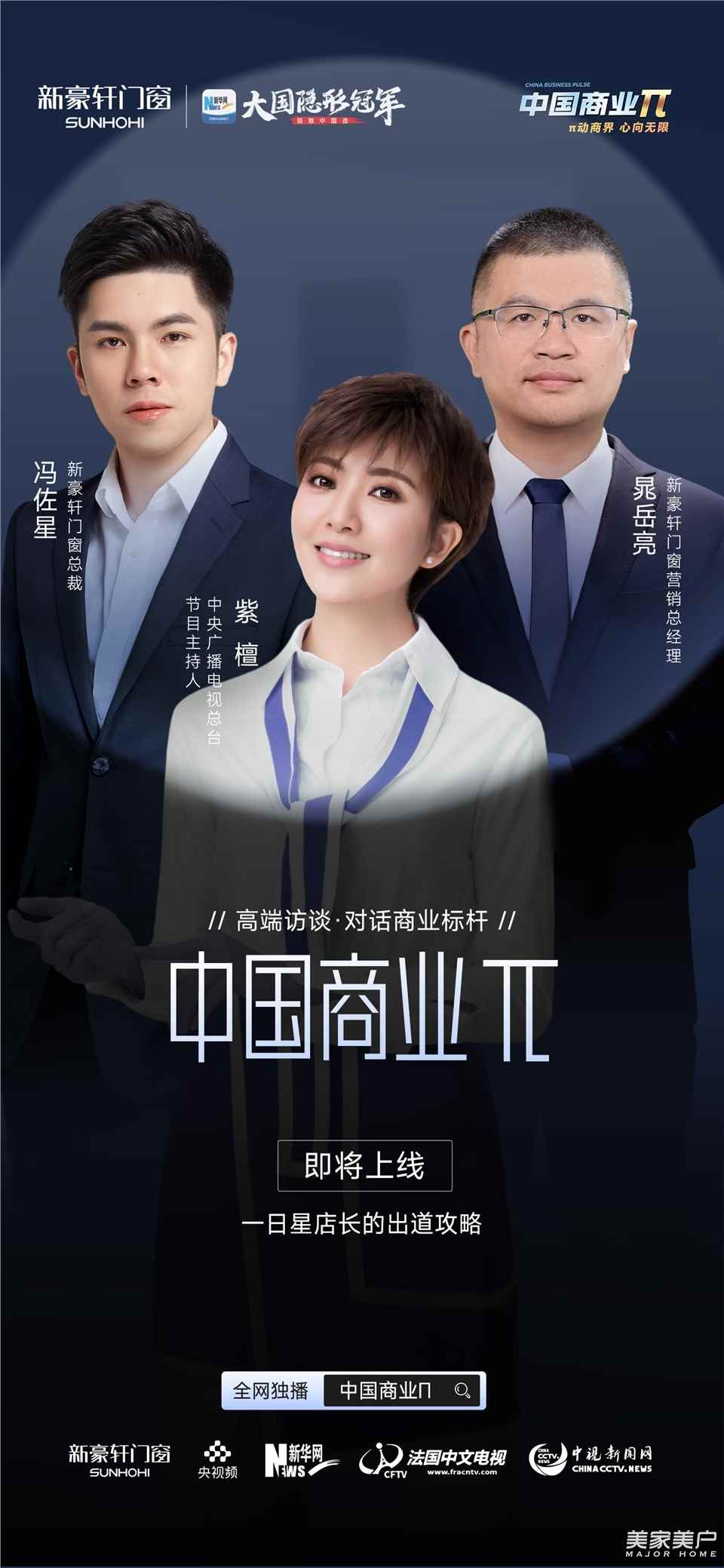 节目看点满满,中央广播电视总台节目主持人紫檀首次跨界,化身新豪轩门窗一日星店长,与总裁冯佐星一同探家,交流冠军门窗背后的用户哲学,与营销总经理晁岳亮一同PK带货,解锁好门窗的黑科技。首次以轻综艺的形式,跟随“星店长”一同零距离解锁一扇好门窗背后的筑家之道,看大国隐形冠军企业的“鲜活日常”。8月13日,节目将在新豪轩门窗视频号、新华网、央视频、中视新闻网、法国电视中文频道同步上线,全程高能别错过喔~📣📣📣