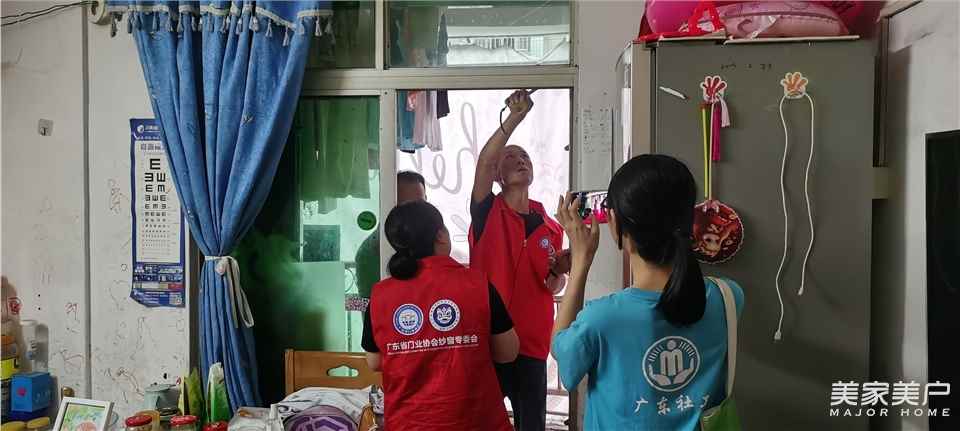 疫情就是命令。7月25日,协会党支部和纱窗专委会积极响应,发起号召,21家企业快速响应,纱窗专委会秘书处在梁桥兴秘书长的统筹下,带领响应的会员企业率先行动,与顺德北滘镇碧江居委常委彭德权取得联系,郑重提出:“物理防蚊是我们纱窗人的责任!”这一庄严承诺迅速被转化为专委会全体成员的集体行动。8月3日,专委会又将关怀延伸至佛山大沥镇凤池社区,在社区工作人员钟炜东协助下,精准锁定三户特困低保家庭作为首批优先安置对象,其中一户居住着一位百岁老人。紧接着第二天,专委会的专业测量团队便上门为凤池社区的这三户家庭进行了细致的测量工作。