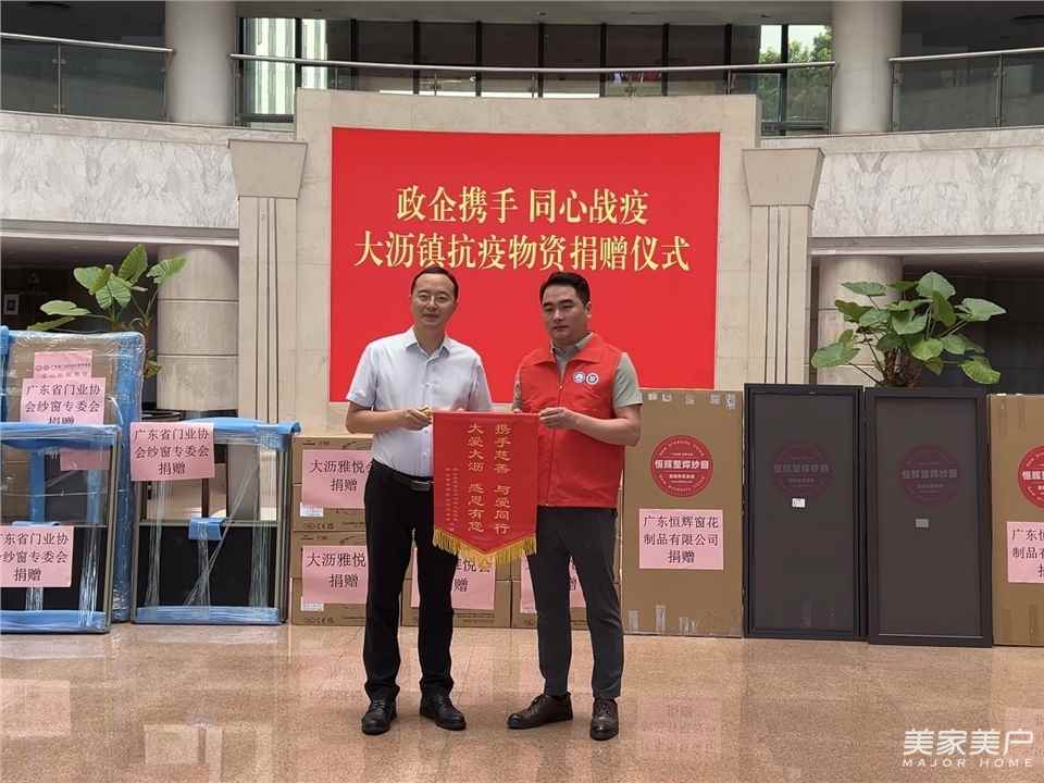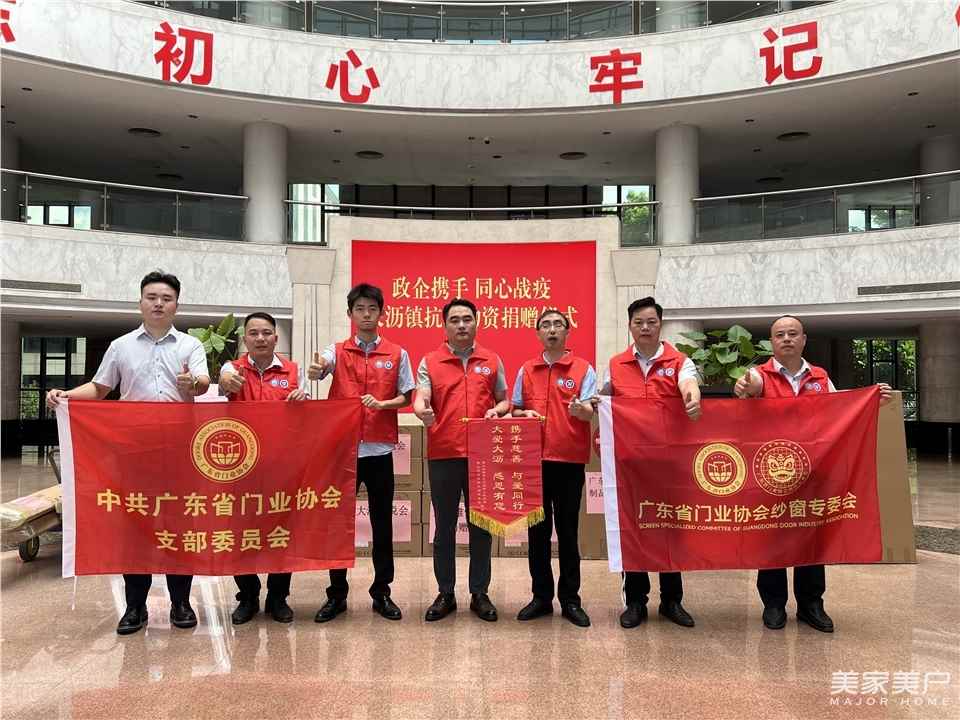 8月11日,广东省门业协会纱窗专委会向佛山市大沥镇政府移交援助纱窗物资,移交仪式在大沥镇政府举行。大沥镇人民政府镇长仰国林、广东省门业协会党支部候任书记、副秘书长谢泉锦,广东省门业协会纱窗专委会会长许晓龙,大沥镇副镇长、妇联主席高韵翔,大沥妇联副主席梁景萍,广东省门业协会纱窗专委会副会长邵华、副会长兼秘书长梁乔兴、副会长张高鹏以及媒体代表出席了仪式。