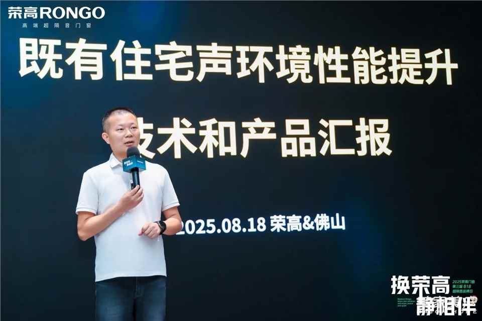 品牌价值的核心支撑是技术创新。发布会特别邀请广州声博士家居建材事业部负责人黄振华先生带来《既有住宅声环境性能提升技术和产品汇报》的专题分享。黄振华先生深入剖析了城市噪音污染的现状、来源及其对人体健康和生活品质的负面影响,并结合详实的数据和案例,系统介绍了当前提升住宅声环境的主流技术和产品解决方案。他着重指出:“门窗是建筑围护结构中隔音的薄弱环节,也是提升整体声环境性能的关键所在。荣高门窗在结构设计、密封系统、材料应用等方面进行的系统性创新,使其隔音性能达到了行业领先水平,为改善既有住宅声环境提供了切实可行的优质选择。”