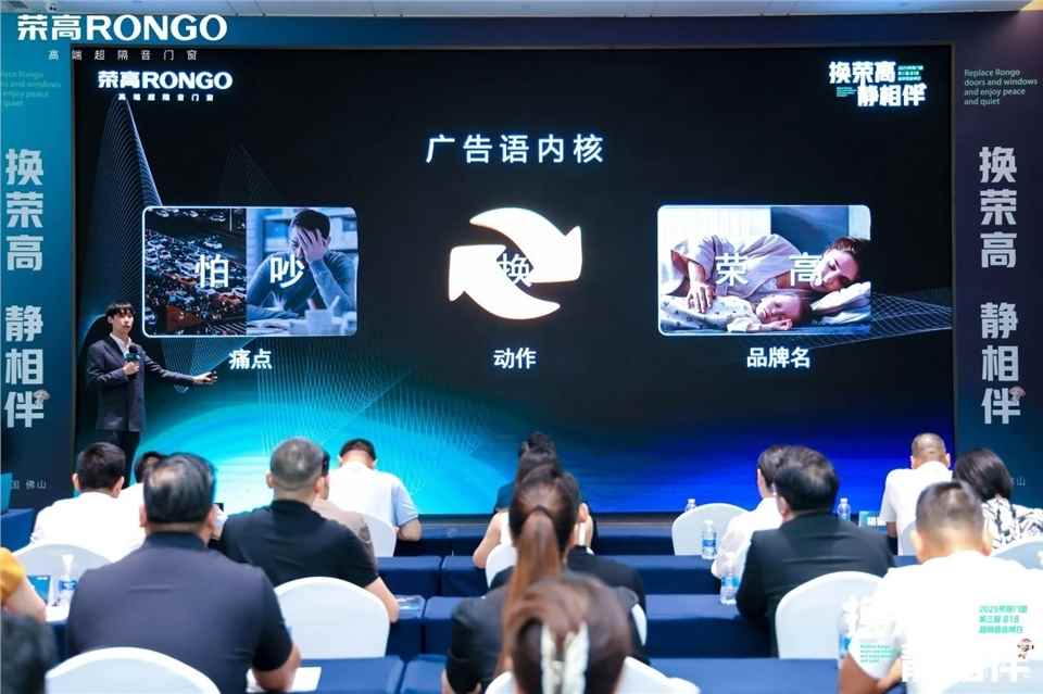 论坛的智慧火花尚未散去,荣高门窗营销总经理严振东先生再次登台,对《818超隔音品牌日全国线下活动》进行了详尽的策略宣讲。严总宣布,围绕“怕吵·换荣高”的全新主张,荣高将投入重磅资源,在8月18日后于全国上千家终端门店同步启动声势浩大的“超隔音品牌日”主题营销活动。活动将包含“静音体验官”挑战赛、专业分贝测试服务、“以旧换新”专项补贴、新品优先体验权等核心内容,旨在让消费者亲身感受荣高超隔音门窗带来的静谧革命,将品牌战略高效转化为市场动能。
