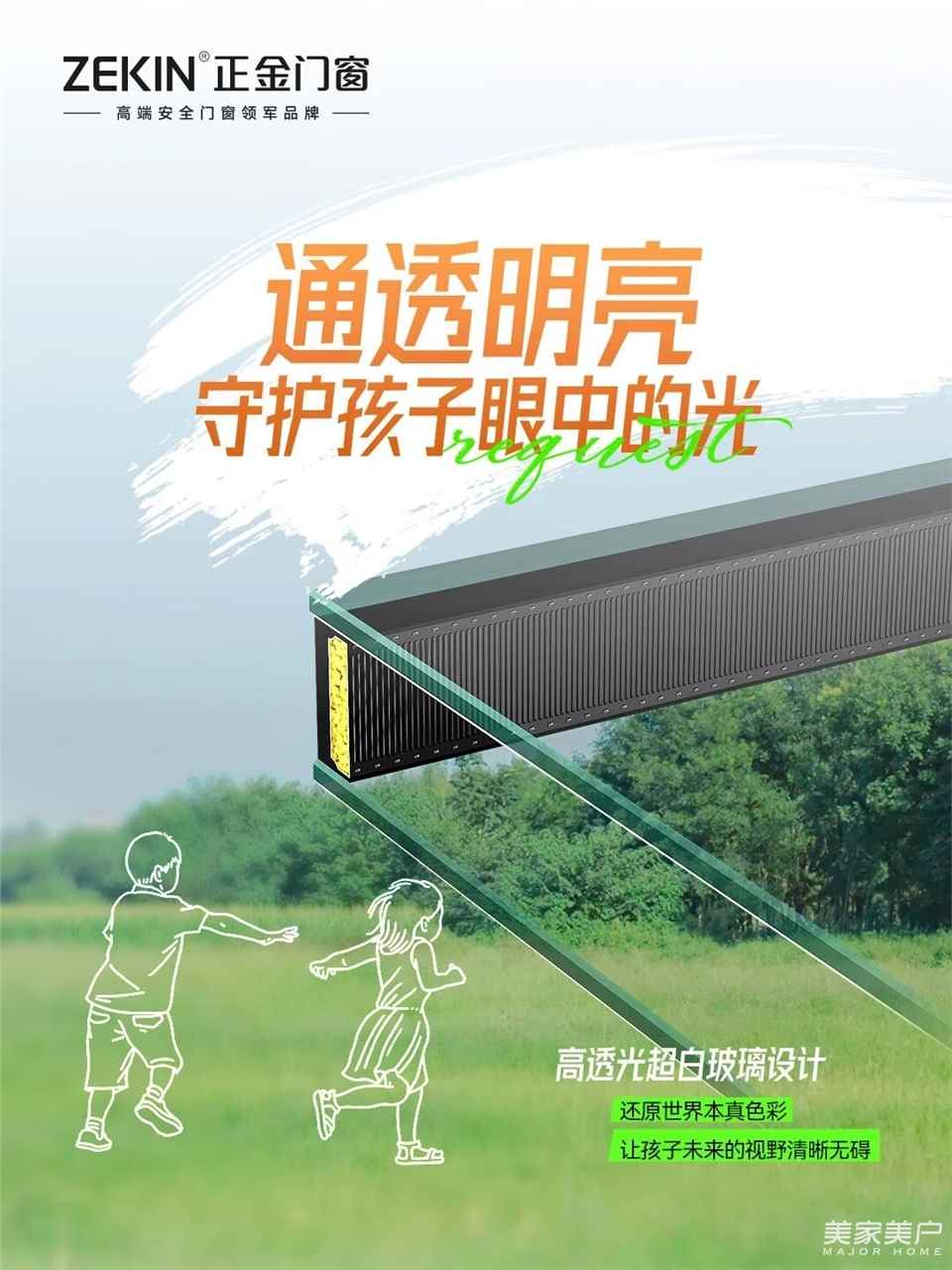 正金门窗采用高透光超白玻璃,透光率超91%以上。让孩子在柔和、真实的光线下阅读书写,有效缓解眼疲劳,守护明眸一双。👀