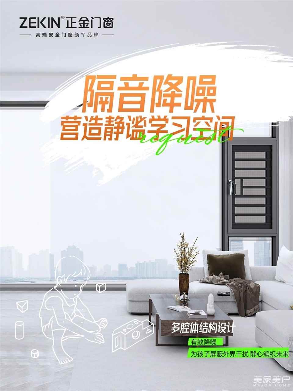 正金门窗的多腔体结构设计,配合优质密封胶条,无论是喧闹的车流还是楼下的嘈杂,都能被有效屏蔽,为孩子隔出一方不受打扰的思考天地,让学习事半功倍。🔇