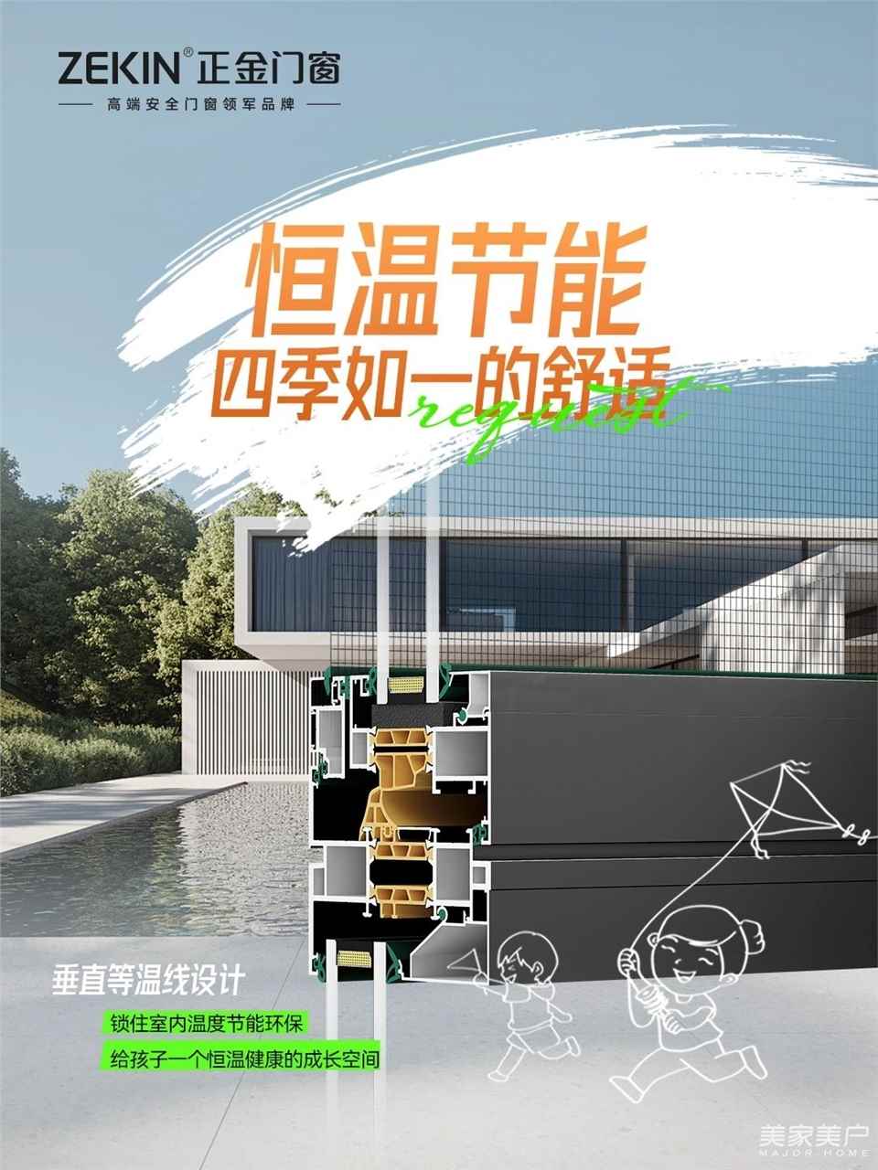 正金门窗采用垂直等温线设计,极大减少热量流失,提升整窗保温性能。确保窗边四季恒温,节能环保的同时,也让孩子在家中的每一个角落都温暖舒适。❄️🔥