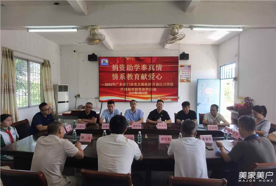 捐赠仪式在江川学校会议室举行。广东省门业协会党支部书记谢泉锦在发言中强调:“封开县江川学校是广东省门业协会长期牵挂和结对帮扶的对象。我们希望凝聚行业力量,传递来自社会的温暖与关怀,为支持地方教育发展、促进社会和谐贡献更多力量。”