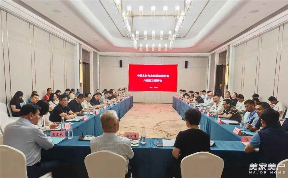 2025年9月4日,中国木材与木制品流通协会八届五次理事会在日照召开。中国木材与木制品流通协会会长李佳峰、副会长张鹏,久盛地板有限公司董事局主席张恩玖,青岛市木材行业协会会长冯国侯,桐乡市汇才红木家俱有限责任公司董事长潘福初,镇江国林生态产业城公司董事长王志明,华东兴业城投资有限公司总经理何海宇,中展智奥(北京)国际展览有限公司副总经理邬成佳,温州木材集团董事长李政,广西德科新材料集团董事长苏治,广西宸鸿木业有限公司总经理陈德振,协会监事刘霞等出席会议。会议由协会秘书长申伟主持。