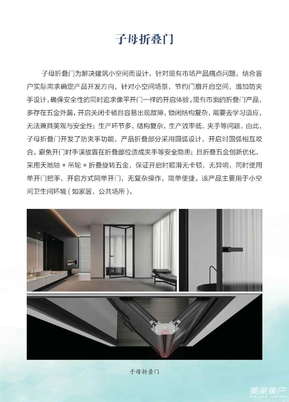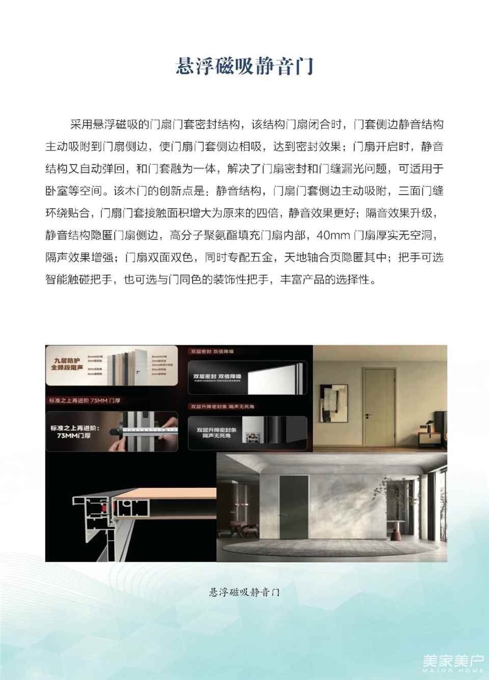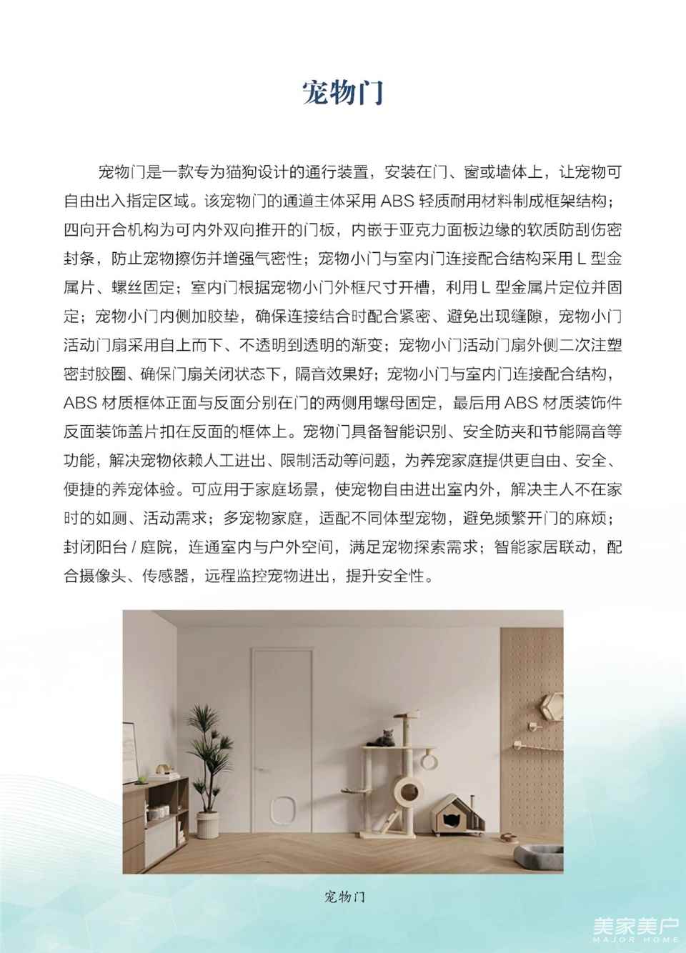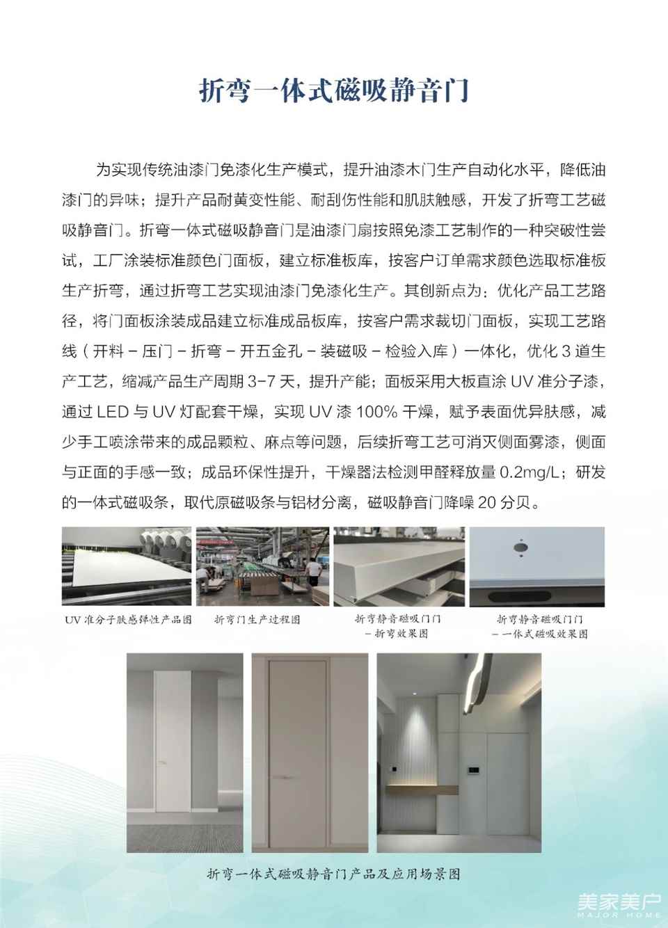 2)工艺结构与功能协同创新:通过结构优化、工艺创新、功能化升级与场景化设计,重新定义木门与现代大家居的功能边界与场景融合,如45°斜口软磁吸技术、自动旋转和开启机制、防夹手缓冲子母折叠门、宠物门、磁吸静音门等高科技功能的引入,使木门产品成为大家居安全与智慧并行的守护者;