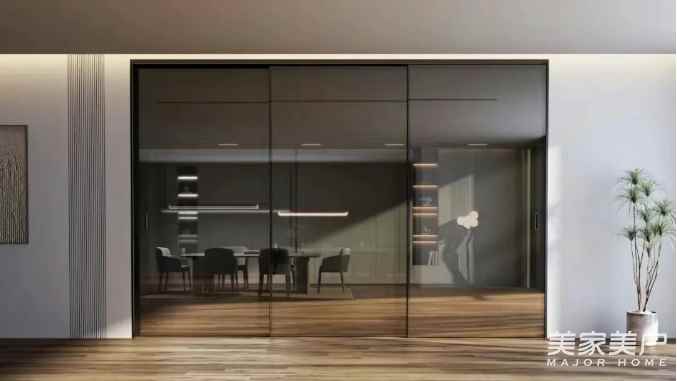 承袭“少即是多”为核心设计理念,融合现代极简主义美学与智能科技,通过应用5mm极窄勾企与钻石斜边设计,打破传统门体视觉束缚,最大化拓宽空间感与光线渗透,营造通透明亮的家居氛围。灵活多变的结构(涵盖吊趟、推拉、平开、幽灵等多元开启方式)适配各类空间布局,赋予家居流动的韵律美与功能适应性,重新定义了高端住宅的空间分隔解决方式。