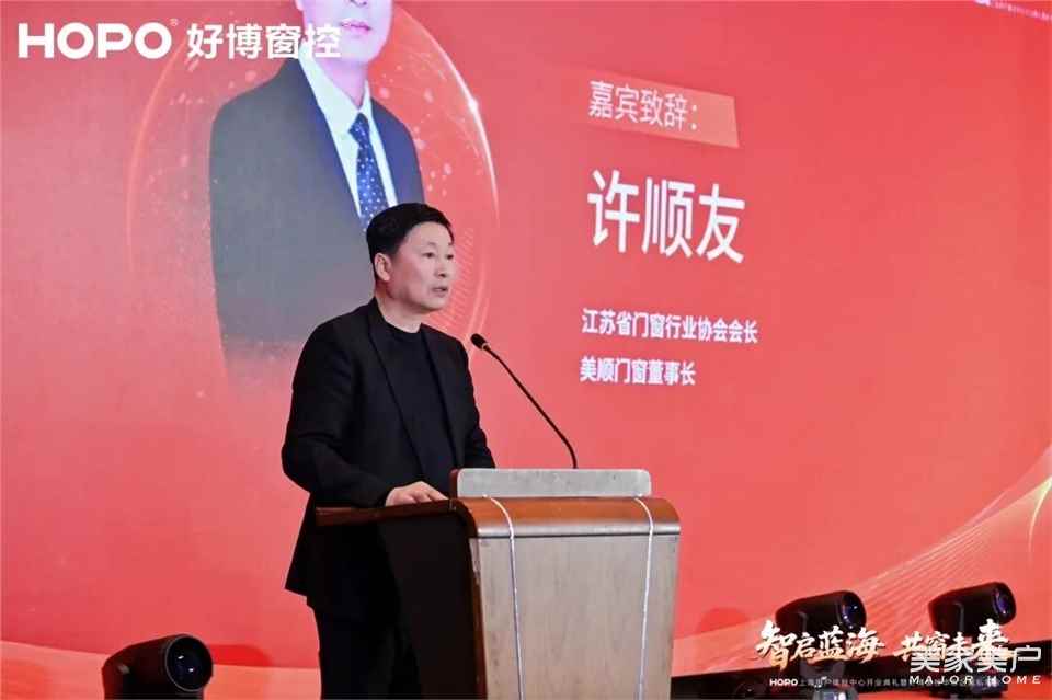 活动在热烈的氛围中拉开帷幕。江苏省门窗行业协会会长、美顺门窗董事长许顺友,安徽省门窗幕墙协会会长、智宬轩系统门窗董事长叶长清先后发表致辞。作为行业协会领军者,他们始终以推动行业高质量发展为己任,积极联合好博窗控等优秀企业,全力促进产业链上下游紧密协作。在“好房子”的时代背景下,着力加大智能化与绿色环保投入,大力推动区域合作与产业升级,为行业稳健前行锚定方向。