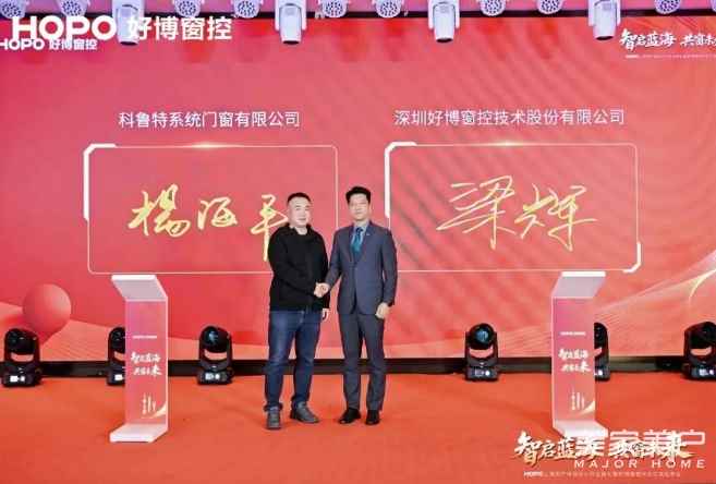 现场,欧福莱门窗、米亚门窗、科鲁特系统门窗、卡西诺门窗、美固门窗五家标杆企业与好博窗控完成战略合作签约。落笔为信,不仅是对好博窗控产品与服务的认可,更是对“协同生态”理念的共同践行。