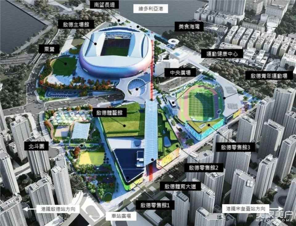 体育园包括可容纳约5万名观众的主场馆、1万个座席的室内体育馆,以及设有5000个座席的室外公众运动场。其中,主场馆配置的可伸缩屋顶与维多利亚港景观幕墙,斩获BIM国际大奖,并凭借卓越的环保性能获得香港绿色建筑议会颁发的绿建环评社区铂金级认证。