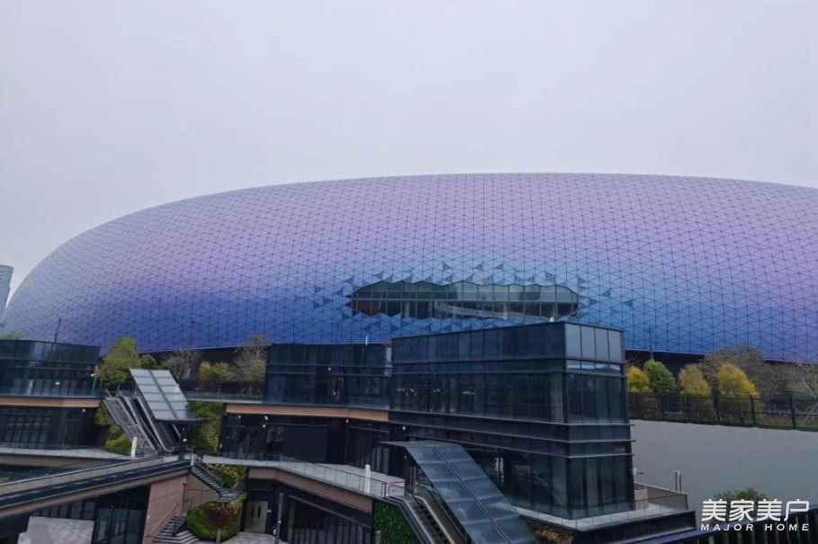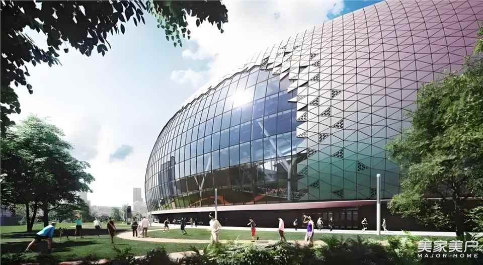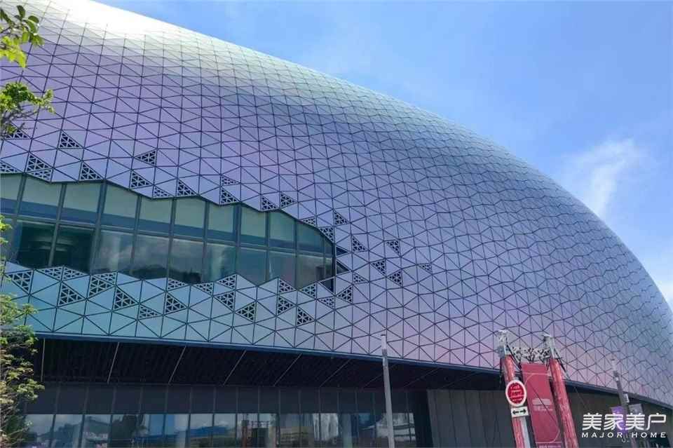 主场馆幕墙面积高达3.5万平方米,以独特的异形三角形幕墙系统为主体,彰显出别具一格的美学效果。