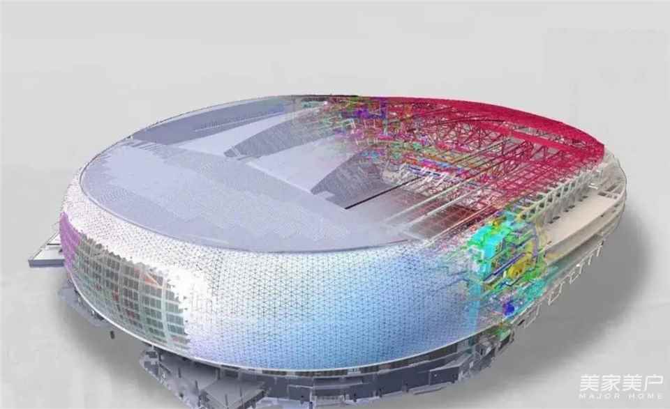 在设计主场馆幕墙时,参与企业面临多项挑战。如多平台模型信息交互,需提供包含项目树形结构框架的IFC和Naviswork模型格式,确保信息流畅传递。