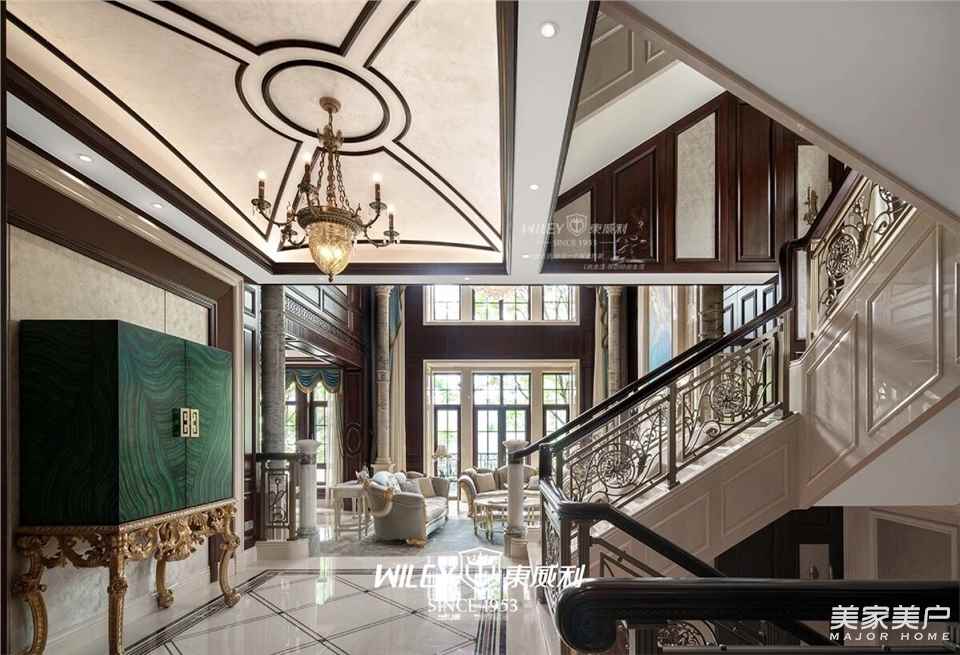 吊顶中心花融合巴洛克繁复与新古典雅致,每片叶瓣由手工反复雕琢,近看精致,是匠人数十年功底赋予木材的生命张力。