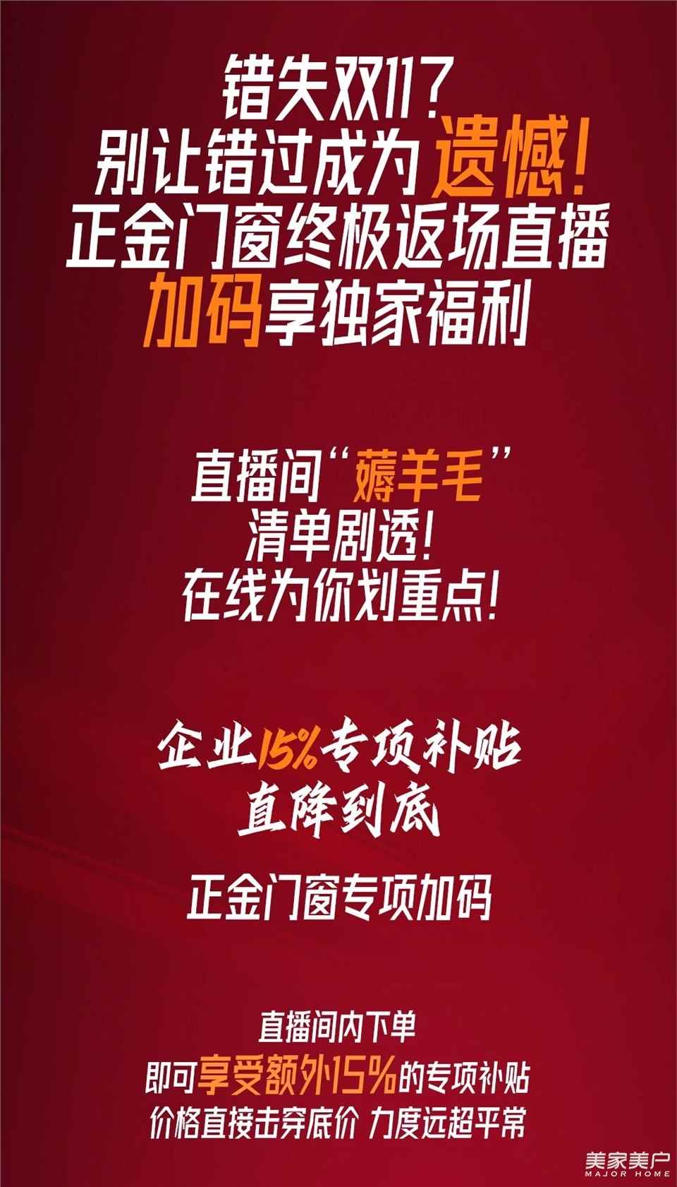 错失双十一?别让错过成为遗憾!正金门窗终极返场直播 加码享独家福利