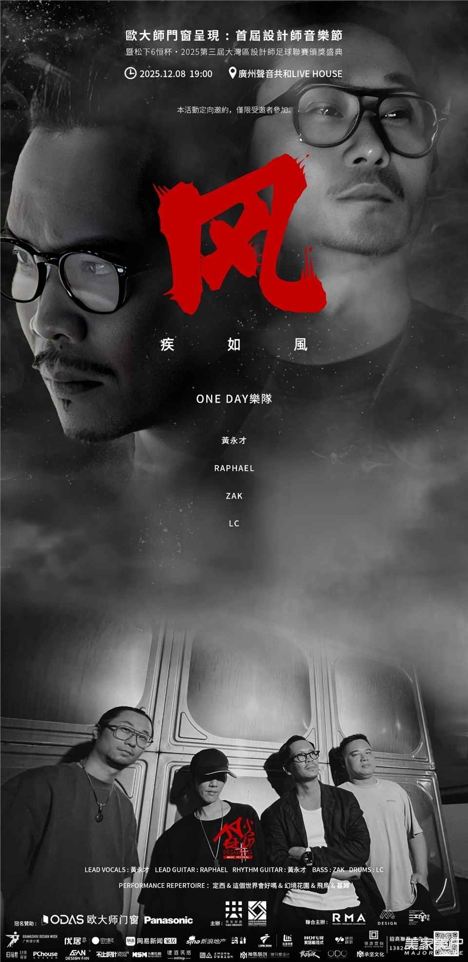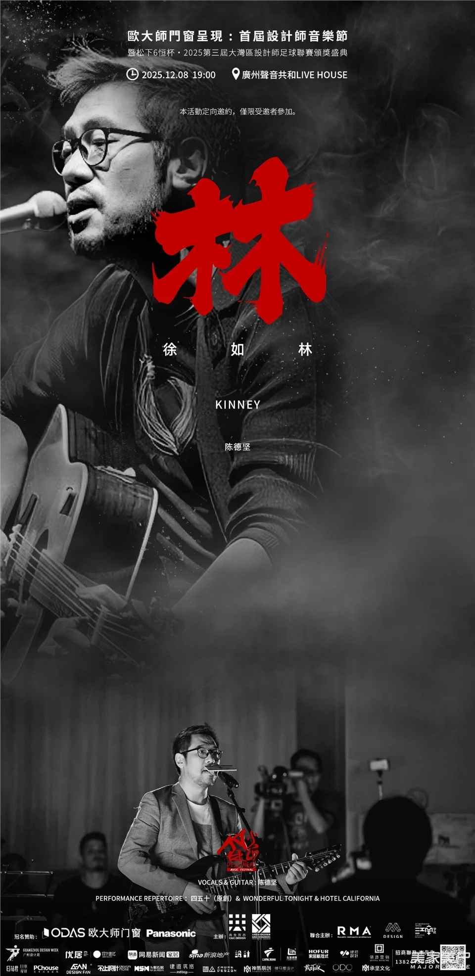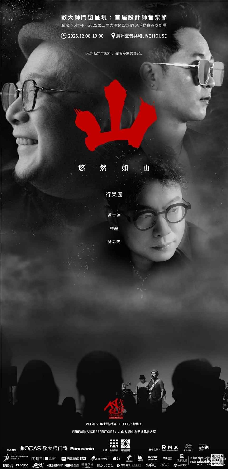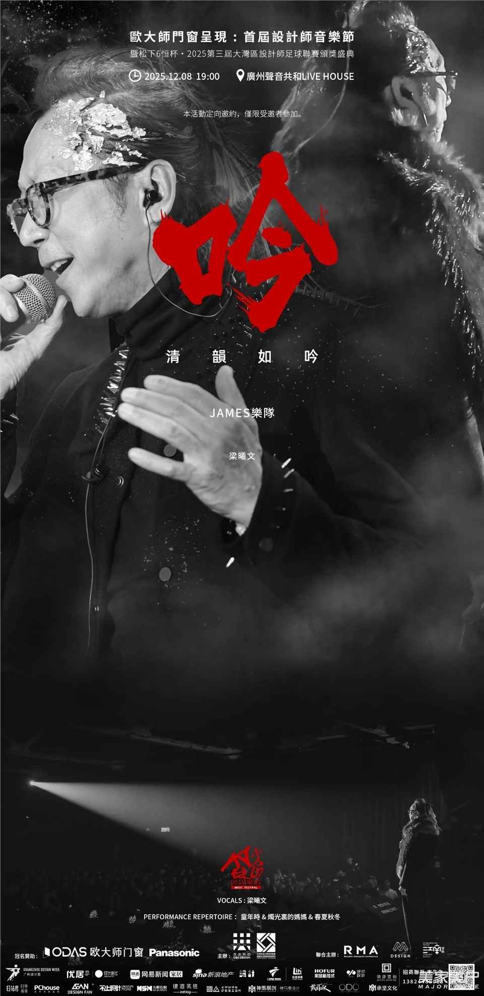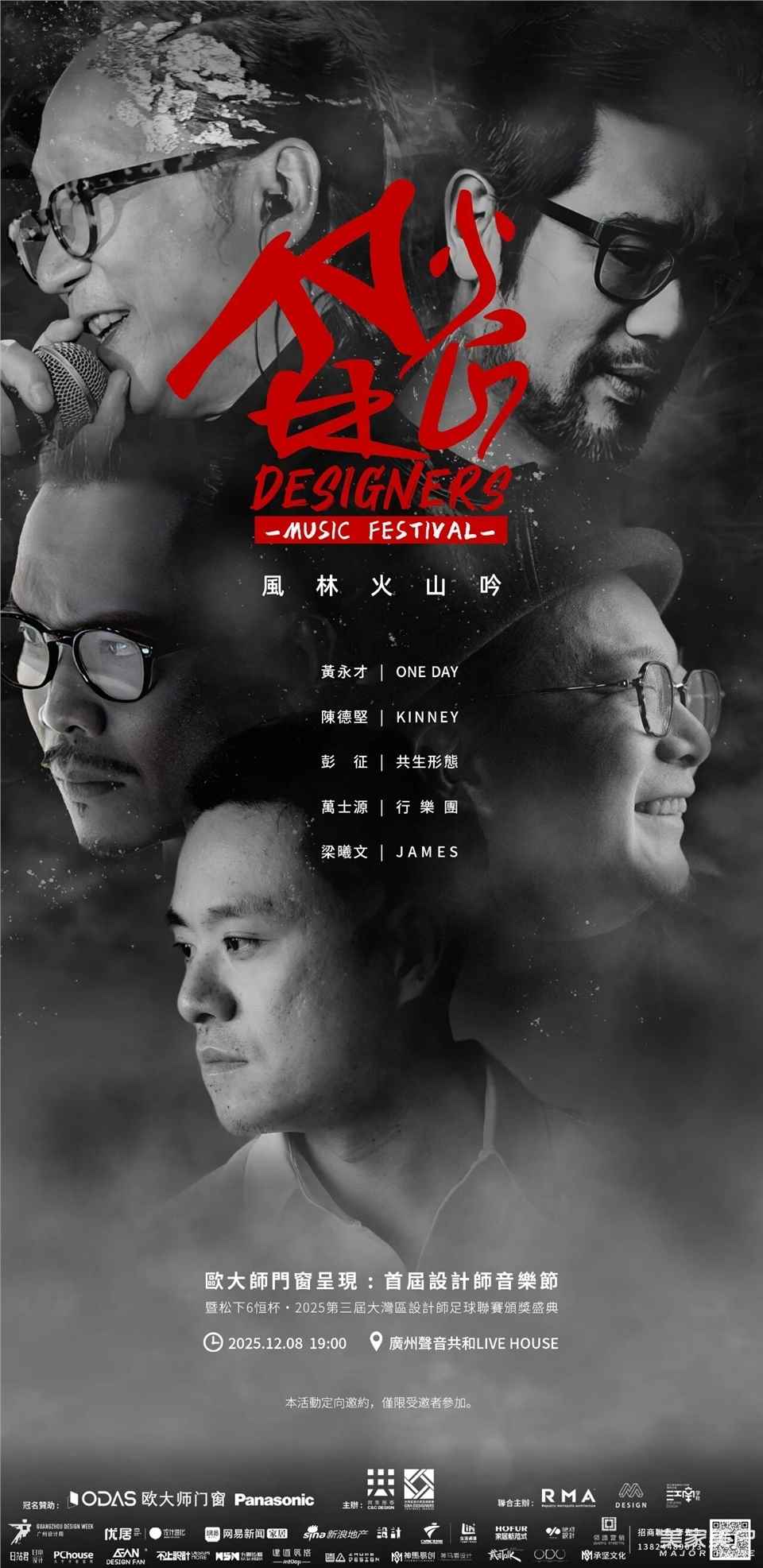 设计师音乐节是中国首个设计师创办的音乐文化IP。首届设计师音乐节由知名设计师彭征、黄永才、梁曦文、陈德坚、林森、万士源先生等联合发起、欧大师门窗作为总冠名的设计师音乐盛典,于2025年12月8日在广州声音共和Live House举办。