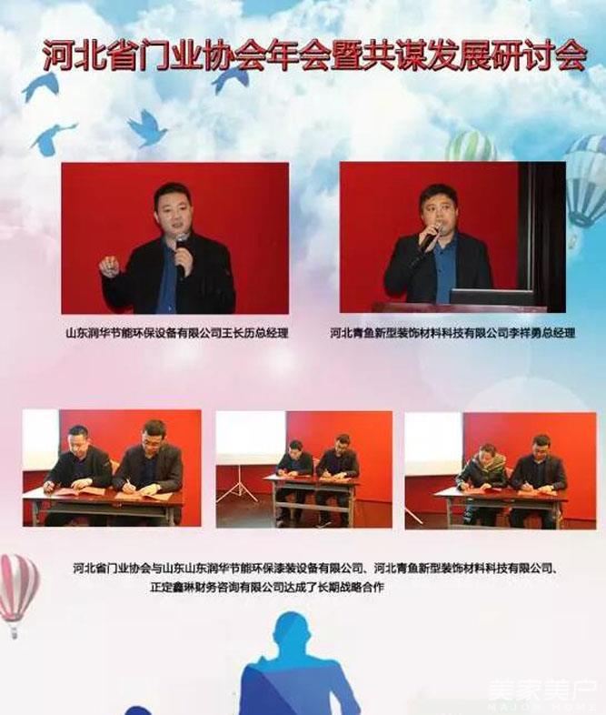 最后河北省门业协会分别与山东润华节能环保设备有限公司、河北青鱼新型装饰材料科技有限公司、正定鑫琳财务咨询有限公司达成了长期战略合作意向,并签署战略合作意向书。