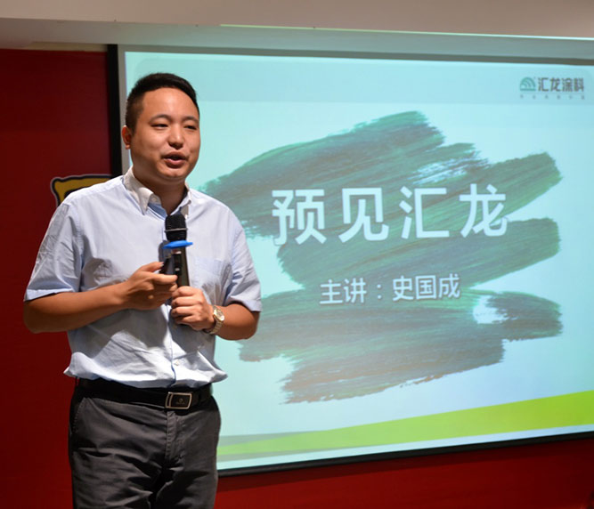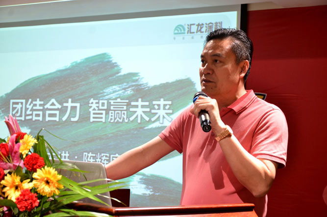 会上,汇龙涂料董事长陈辉庭作了《团结合力,智赢未来》的主题演讲。他从汇龙公司发展战略、上半年来所做的主要工作、企业所担负的社会责任、行业责任和员工责任等方面来总结上半年的经营成绩,规划了下半年的战斗路线。他指出,在房产市场回暖的上半年,涂料市场竞争依然激烈,汇龙始终坚持不单卖产品而是卖一整套环保涂装解决方案的态度去做市场。他认为,要把涂料事业做强做大,不但要产品优质专业,更要服务贴心周全,一定要做到想客户之所想,急客户之所急。