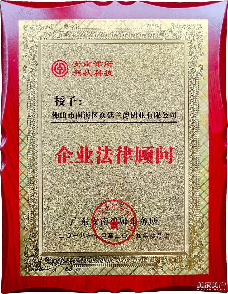 热烈欢迎佛山市南海区众廷兰德铝业有限公司加入广东省门业协会铝门窗专委会副会长单位