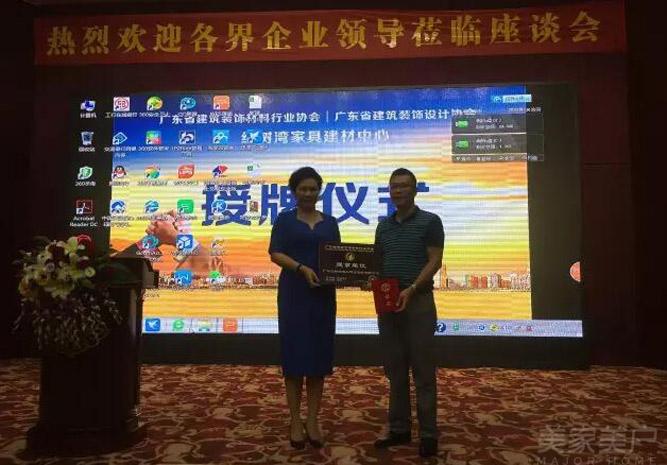 兰芳会长为广东红树湾家具博览实业有限公司亲自授牌,恭贺红树湾荣誉当选协会理事单位。