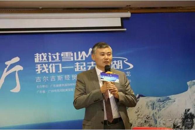 吉尔吉斯共和国驻广州总领事马克萨特·坚季米舍夫先生首先致辞,他向参会的企业家、设计师嘉宾们介绍了吉尔吉斯的概况和风土人情以及投资现状,希望大家能够抓住发展机遇,通过协会这个平台,去吉尔吉斯投资建设、共谋发展。