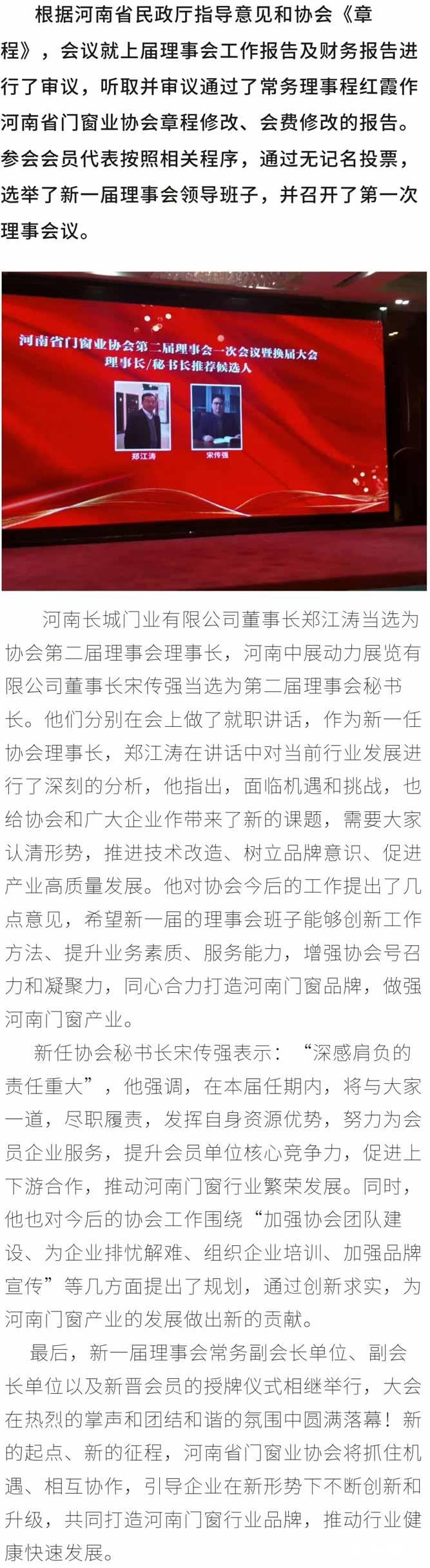 新起点 新征程——河南省门窗业协会第二届理事会一次会议暨换届大会成功召开