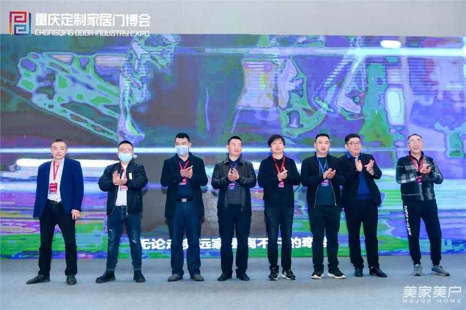 随后,重庆市木门行业协会秘书长梁天顺,开州区重庆智能家居产业园主任张波,重庆定制家居门博会总经理李秀强等八位行业代表共同开启展会的序幕。